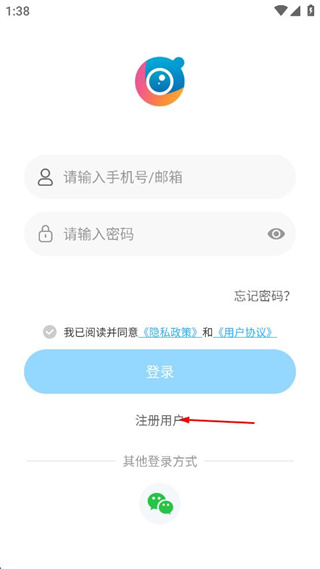 1、點(diǎn)擊注冊(cè)用戶選項(xiàng),進(jìn)入注冊(cè)賬號(hào)界面。