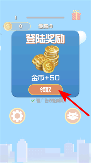 2、在登錄獎(jiǎng)勵(lì)界面,點(diǎn)擊“領(lǐng)取”按鈕,獲取金幣獎(jiǎng)勵(lì)。