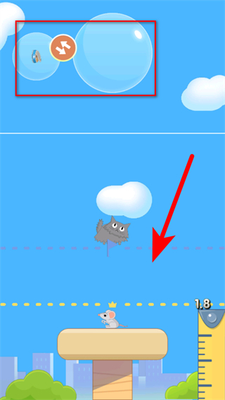 4、利用場(chǎng)景中的泡泡等元素,幫助貓貓變換形態(tài)或獲得助力,挑戰(zhàn)更高分?jǐn)?shù),享受游戲樂(lè)趣。