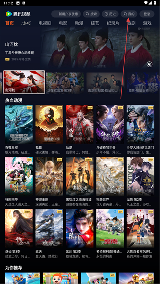 1、打開騰訊視頻的APP,進(jìn)入首頁點(diǎn)擊右上我的圖標(biāo)。