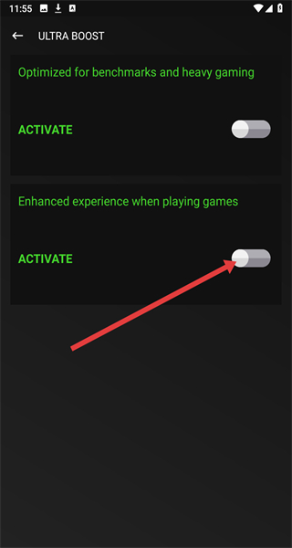 3、在ULTRA BOOST頁(yè)面,點(diǎn)擊“Enhanced experience when playing games”對(duì)應(yīng)的開(kāi)關(guān)。