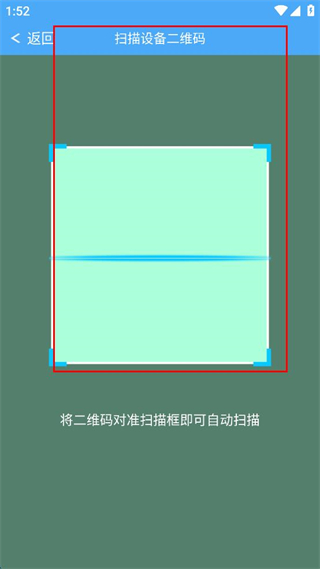 4、將設(shè)備對應(yīng)的二維碼對準(zhǔn)掃描框,等待應(yīng)用自動完成掃描及后續(xù)注冊流程。