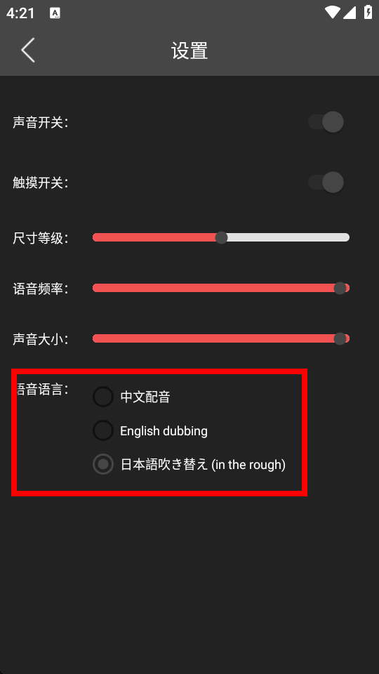 4、在設(shè)置頁面,找到語音語言選項區(qū)域,根據(jù)需求選擇即可。