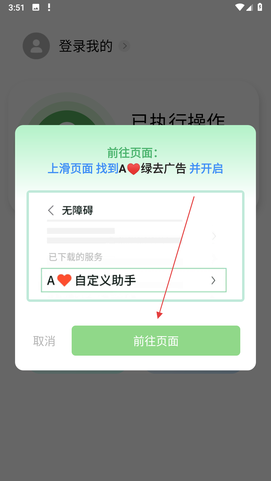2、點(diǎn)擊后會彈出提示彈窗,引導(dǎo)前往相關(guān)頁面開啟服務(wù),點(diǎn)擊彈窗中的前往頁面按鈕,進(jìn)入無障礙設(shè)置頁面。