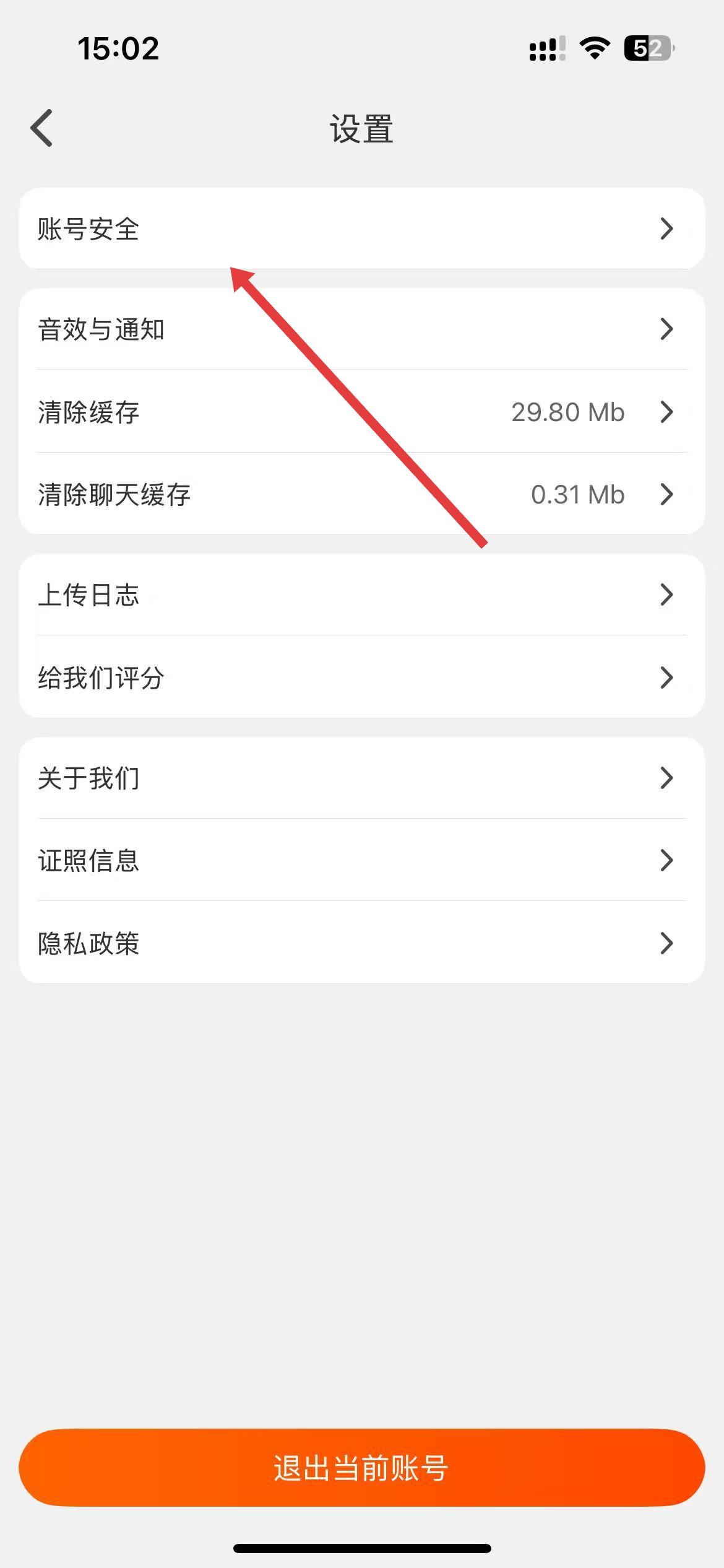 2、在設(shè)置界面里找到并點擊賬號安全選項,進(jìn)入賬號安全界面。
