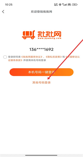 3、在進(jìn)入到登錄頁面中,可以點擊其他號碼登錄按鈕,進(jìn)行登錄操作。