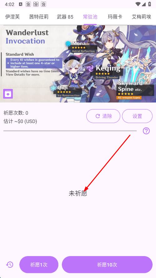 2、點擊后,祈愿次數(shù)會歸零,抽卡結(jié)果列表也會清空,回到未祈愿狀態(tài)。