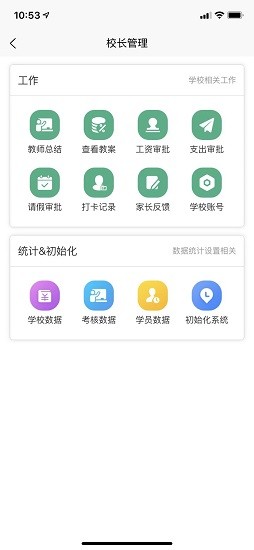 審批工資、審批支出、員工請假審批、家長反饋、學校財務數據、員工考核數據、學員數據等。