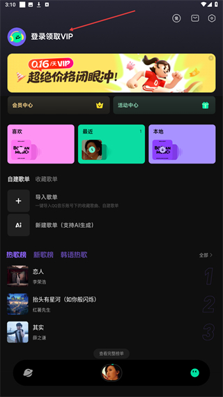 2、在主界面內(nèi),點(diǎn)擊登錄領(lǐng)取VIP區(qū)域,進(jìn)入登錄頁面。