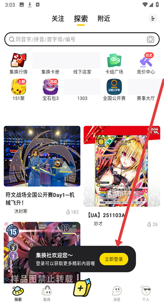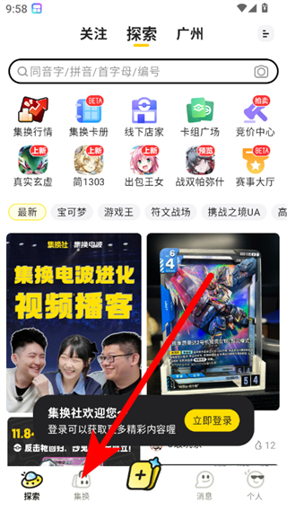 1、在集換社首頁,點(diǎn)擊集換選項(xiàng),進(jìn)入集換界面。