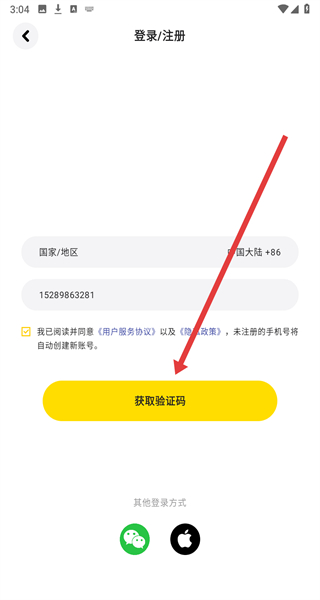 3、在登錄頁面輸入手機(jī)號,勾選“我已閱讀并同意《用戶服務(wù)協(xié)議》以及《隱私政策》”,點(diǎn)擊“獲取驗(yàn)證碼”。
