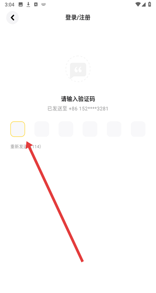 4、進(jìn)入到驗(yàn)證碼頁面后,點(diǎn)擊輸入框輸入收到的驗(yàn)證碼,完成賬號登錄流程。
