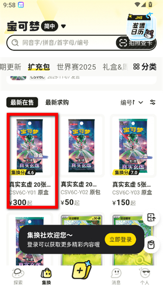 3、在擴(kuò)充包分類頁面,選擇想要查看的寶可夢卡商品,即可查看其在售信息。