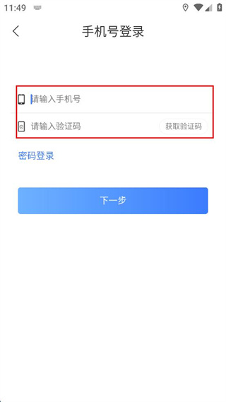3、在驗(yàn)證碼登錄界面輸入手機(jī)號碼和驗(yàn)證碼。