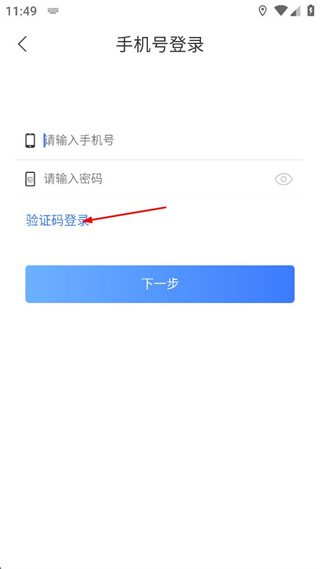 2、在手機(jī)號登錄頁面點(diǎn)擊驗(yàn)證碼登錄,切換到驗(yàn)證碼登錄界面。