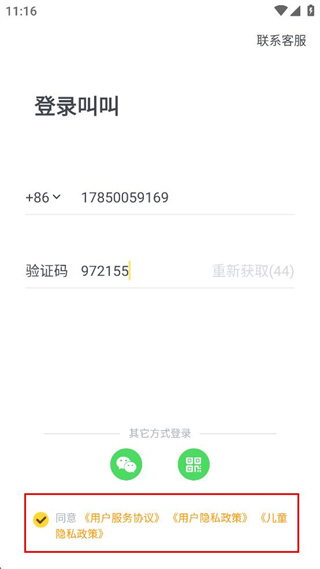 1、在登錄界面輸入手機(jī)號(hào)和驗(yàn)證碼,勾選同意相關(guān)協(xié)議,完成登錄操作。