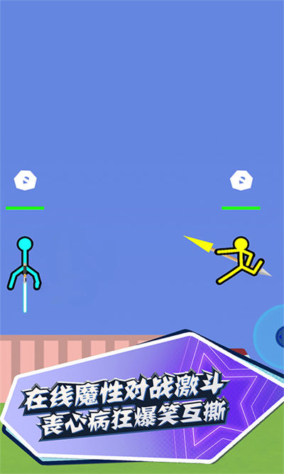 2、簡潔清新的游戲畫面,刺激的武器對戰(zhàn)玩法,火柴人對戰(zhàn)火柴人;
