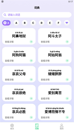 趣味拼詞大贏家是成語(yǔ)學(xué)習(xí)軟件,適用于每個(gè)小伙伴,讓大家隨時(shí)在線學(xué)習(xí)成語(yǔ),掌握眾多成語(yǔ)知識(shí),簡(jiǎn)單的操作快速查找自己想要學(xué)習(xí)成語(yǔ),根據(jù)首字母快速查詢,也可以輸入成語(yǔ)在線查找,快速找到查看成語(yǔ)釋義,同時(shí)還能在線聽(tīng)成語(yǔ)故事。