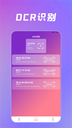 - 為大家?guī)?lái)OCR識(shí)別服務(wù),支持文字識(shí)別、身份 證識(shí)別、銀 行卡識(shí)別、營(yíng)業(yè)執(zhí)照識(shí)別等服務(wù),滿(mǎn)足大家需求;