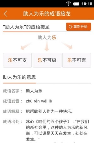 3、數(shù)據(jù)庫里面擁有著超多的成語,提供了一個專業(yè)的學(xué)習(xí)方式,讓我們?nèi)轿坏膶W(xué)習(xí)到成語的故事;