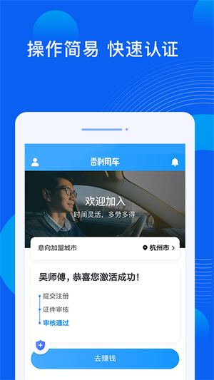 - 簡(jiǎn)單操作快速認(rèn)證,每個(gè)用戶都能輕松認(rèn)證成為司機(jī),歡迎每個(gè)用戶的加入,隨時(shí)在線接單賺錢。
