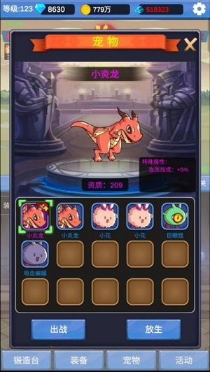 在游戲里面我們不斷的掛機來升級,當我們的等級足夠高的時候就可以去完成關卡的挑戰(zhàn),來得到不同的資源打造出來強大的武器,增加我們的實力,打敗更多的boss是一個非常簡單的游戲玩法,我們還可以解鎖收集更多的寵物來跟隨我們。