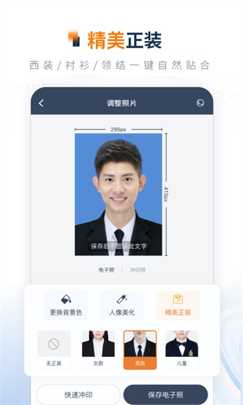 一寸證件照制作在軟件里面擁有著一個(gè)拍攝完成之后我們需要打印的服務(wù),可以一鍵為我們提供出來(lái),在足不出戶的情況下就可以完成自己的證件照制作,隨意的更換子自己的能力,智能的美顏系統(tǒng)也能夠使用起來(lái)。