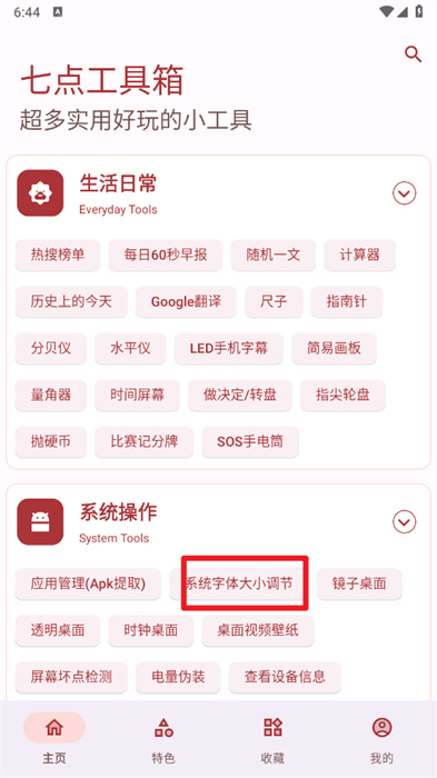 1、進(jìn)入到應(yīng)用之中后,用戶需要點擊屏幕上的【系統(tǒng)字體大小調(diào)節(jié)】按鈕,以進(jìn)行系統(tǒng)字體的調(diào)節(jié);