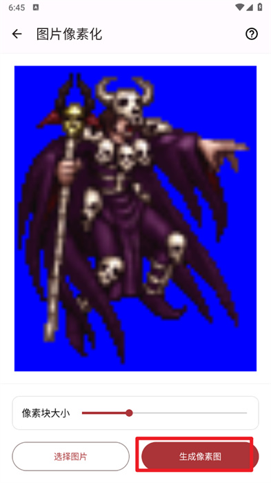 6、選擇好圖片后,點擊屏幕下方的【生成像素圖】按鈕即可完成圖片的像素化。