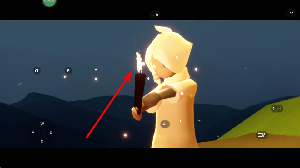 1、進(jìn)入游戲后,角色手持蠟燭,這是點(diǎn)火基礎(chǔ)道具,可通過(guò)左側(cè)按鍵控制角色移動(dòng),前往需點(diǎn)火的目標(biāo)位置。