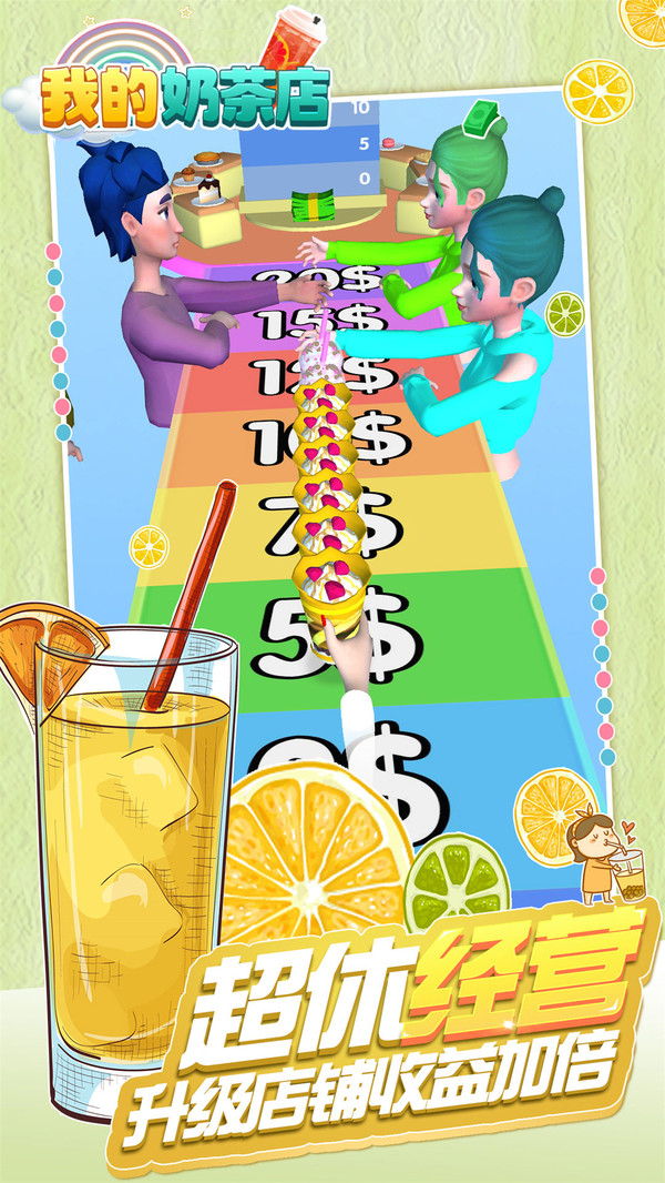 -游戲里加入多種玩法,可以選擇經(jīng)營還是趣味小玩法,躲避障礙物,進(jìn)行奶茶酷跑;