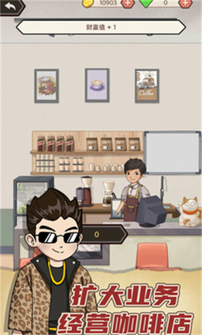 -選擇合適的店鋪?zhàn)鳛楦睒I(yè),開始創(chuàng)業(yè),不斷接待各種客戶,賺取利潤,擴(kuò)大店鋪規(guī)模,解鎖更多的店鋪;
