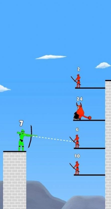 -關(guān)卡里的弓箭手是可以合成的,逐漸的增加自己的戰(zhàn)斗力,挑戰(zhàn)更強大的對手,獲得更多的獎勵。