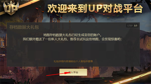 4.新平臺設置了一系列的新活動和獎勵,豐富的道具等你來拿,我們在【UP官方對戰(zhàn)平臺】等你的到來,讓我們在新平臺開啟新的游戲旅途吧。
