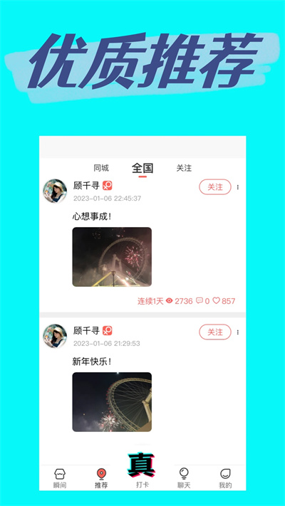 真實打卡app是如今可以隨時記錄自己的生活軟件,在如今的生活上我們可以有太多的美好事物給予大家了解,所以我們也可以更好的給予各位進行拍照打卡紀(jì)念,該應(yīng)用給予了大家拍照留念。