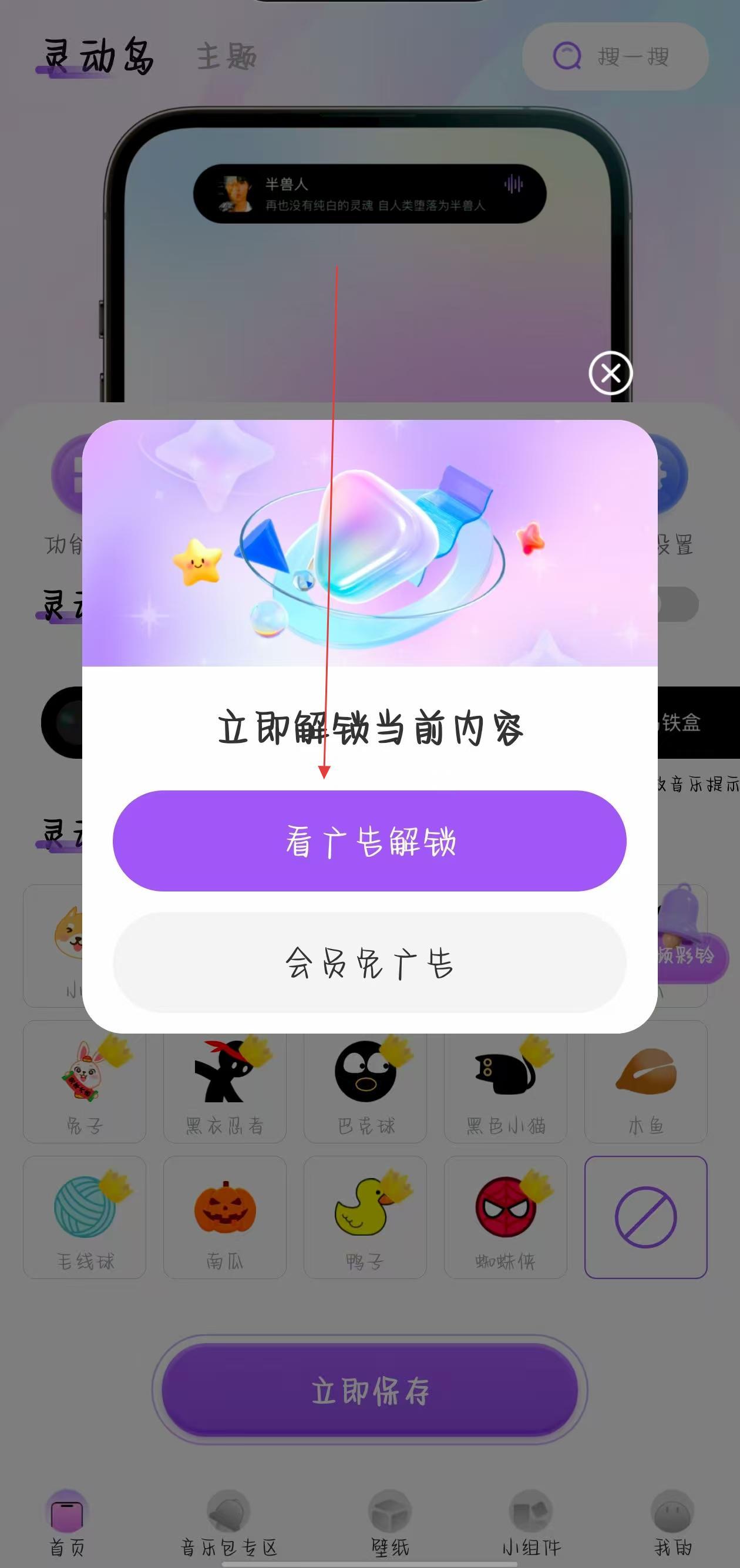 2、點擊后彈出立即解鎖當前內容提示框,選擇看廣告解鎖選項,觀看廣告解鎖相關功能。