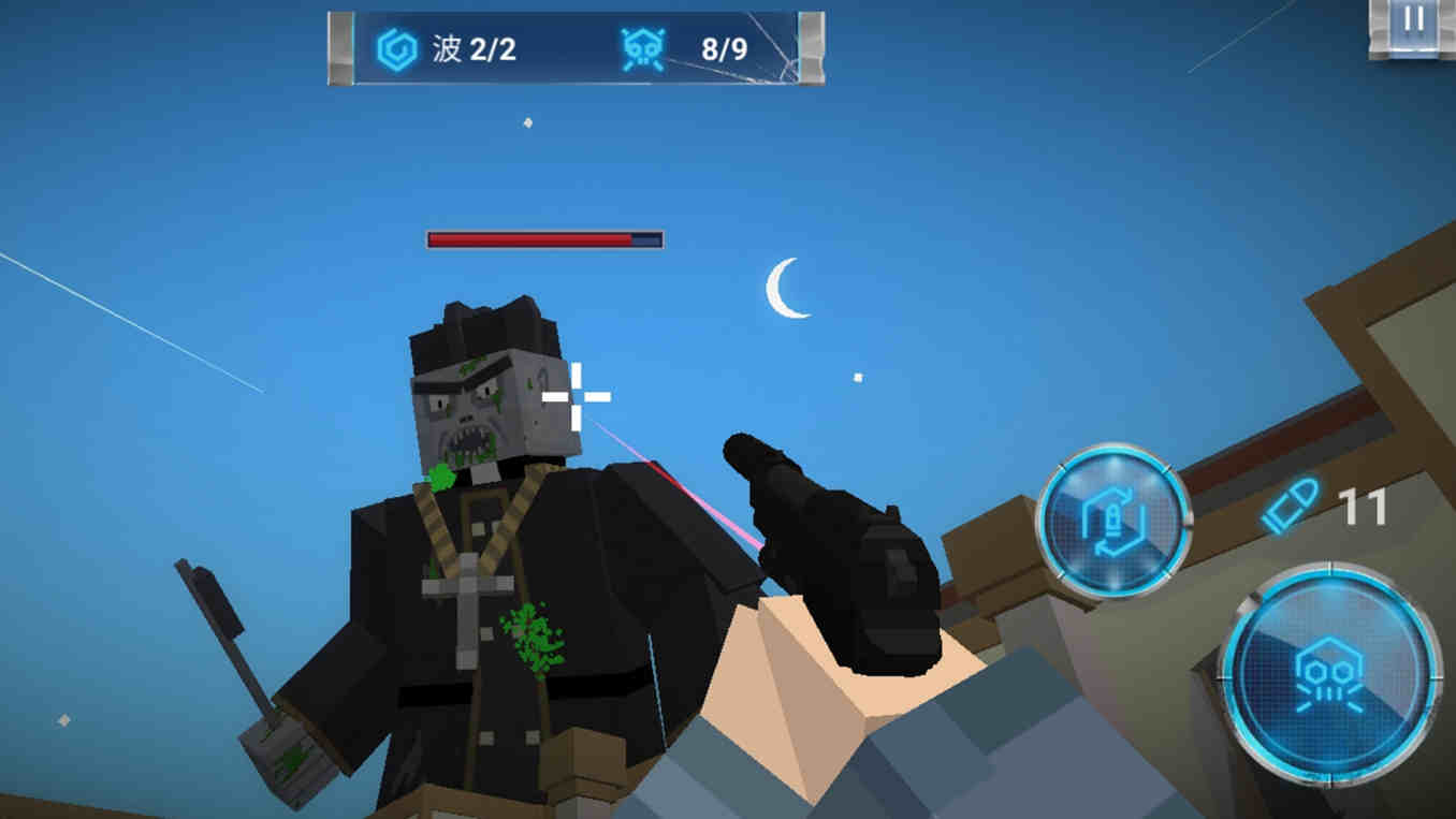 3、作為像素射擊游戲,玩家化身方塊反派,在像素世界中與怪物進(jìn)行射擊對(duì)決。