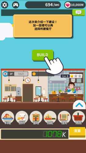餐廳王手游是一款放置與模擬經(jīng)營(yíng)結(jié)合的游戲,開設(shè)您自己的主題餐廳,并為每個(gè)樓層設(shè)計(jì)不同的風(fēng)格,選擇您最喜歡的廚師并協(xié)商薪水,不同的廚師有不同的技能和專長(zhǎng),通過精心經(jīng)營(yíng),合理戰(zhàn)略部署,逐步發(fā)展小飯店,將您的餐廳傳播到世界各地,快來下載試試吧。