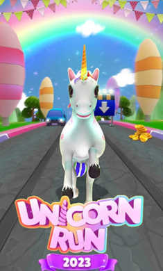 1、獨(dú)角獸不停地跳躍和沖刺,驚人的3D獨(dú)角獸跑步游戲,免費(fèi)無盡的 3D 小馬沖刺;