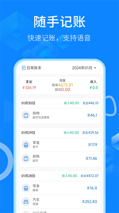 2.提供簡單的記賬方法。您可以使用語音輸入保留您的帳戶并在一秒鐘內打開它;
