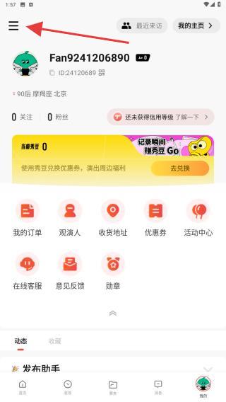 2、進(jìn)入我的頁面內(nèi),點(diǎn)擊左上角三個(gè)橫線的按鈕。