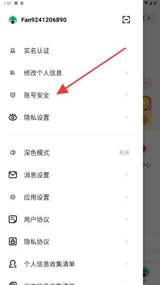3、在左側(cè)彈出的菜單欄中,找到并點(diǎn)擊賬號(hào)安全的功能按鈕。