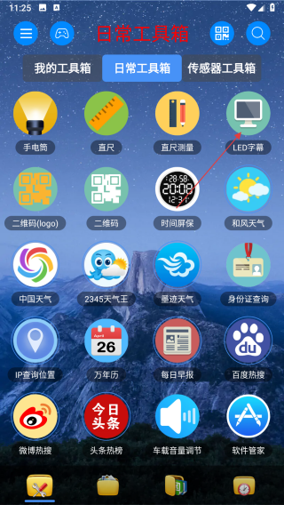 1、打開太極工具箱,進入日常工具箱頁面,點擊LED字幕功能圖標,進入LED手機字幕設置界面。