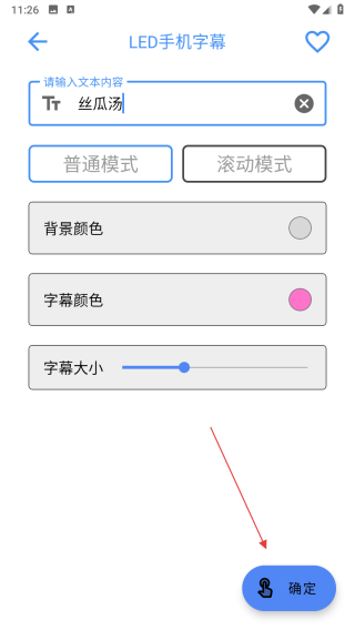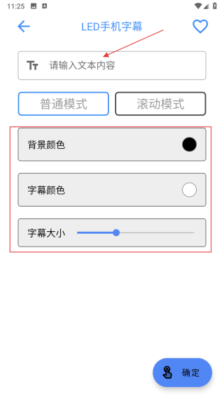 2、在LED手機字幕界面的輸入框中,輸入需要顯示的文本內容,在界面中設置背景顏色、字幕顏色、字幕大小。