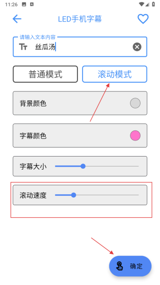 4、若選擇滾動模式,還可調整滾動速度,調整好同樣點擊確定即可生成。