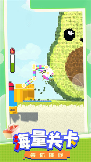 拆遷我賊溜手機(jī)版是一款休閑益智主題的游戲,玩家在游戲中需要開(kāi)一臺(tái)卡通的挖掘機(jī),在游戲中對(duì)不同的墻體進(jìn)行拆除,游戲中墻體的拆除玩家是可以隨意的選擇角度的,玩家可以將拆除之后的磚塊收集起來(lái),還能兌換出有用的金幣哦。