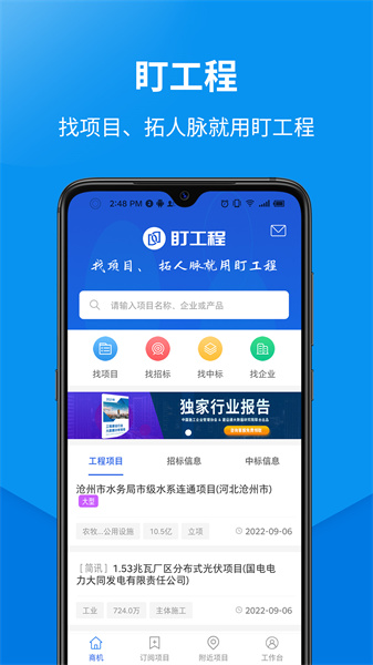 盯工程官方版是一款可以帶來更安全的建筑工程項目信息服務(wù)平臺,為建筑工程信息服務(wù)提供了大數(shù)據(jù)的信息分析和處理,為建筑行業(yè)的人員提供建材、設(shè)備、分包等建筑行業(yè)銷售人員服務(wù),讓項目更高效業(yè)績也在不斷提高。