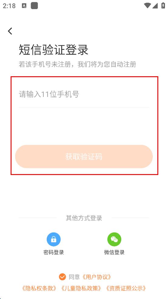 3、進(jìn)入短信驗(yàn)證登錄頁面,輸入手機(jī)號碼,點(diǎn)擊“獲取驗(yàn)證碼”。