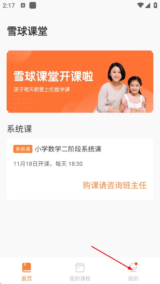 1、打開雪球課堂APP,點(diǎn)擊底部“我的”選項(xiàng)。