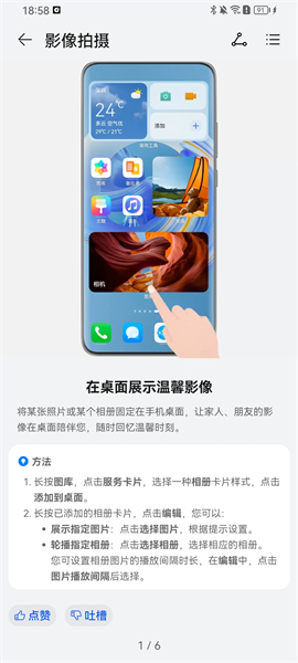2、點擊影響拍照,會有詳細(xì)的拍照技巧,以及如何子桌面展示溫馨影像,方法步驟講解詳細(xì);